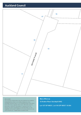 Copyright Auckland Council. Land Parcel Boundary information Scale @ A4