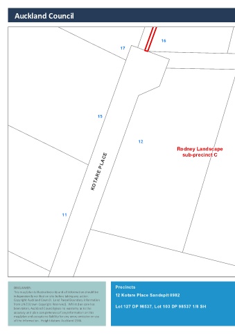 Copyright Auckland Council. Land Parcel Boundary information Scale @ A4