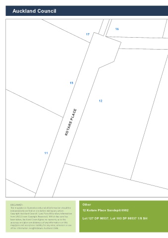 Copyright Auckland Council. Land Parcel Boundary information Scale @ A4