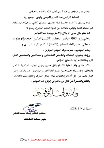 ونختتم تقرير المؤتمر بتوجيه أسمى آيات الشكر والتقدير والعرفان