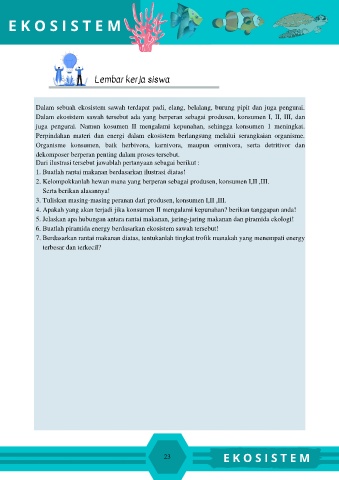 Dalam ekosistem sawah tersebut ada yang berperan sebagai produsen, konsumen I, II, III, dan