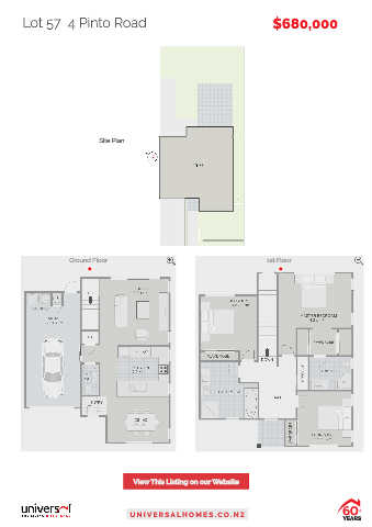 Lot 57 4 Pinto Road $680,000 Site Plan Ground Floor 1st Floor View This Listing on our Website U N IVE R S A L H O M E S . C O . N Z YEARS