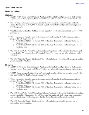 ● The 2017 District Value-Added PVAAS data indicates “moderate evidence that the district exceeded the
