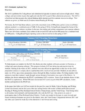 In the pages that follow are SAT test results for the past five years for Math, Critical Reading, and Writing