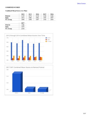 Table of Contents COMBINED SCORES Combined Mean Scores over Time District 2012 2013 2014 2015 2016 State 1639 1676 1638 1634 1642 TL Group 1472 1480 1481 1485 1487 1498 1498 1497 1490 1484 District 2017 State 1186 TL Group 1073 1070 110