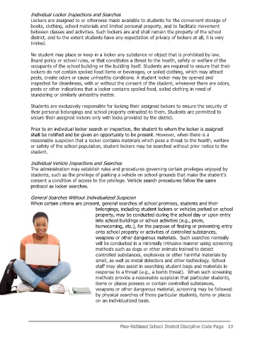 pests, create odors or cause unhealthy conditions. A student locker may be opened and