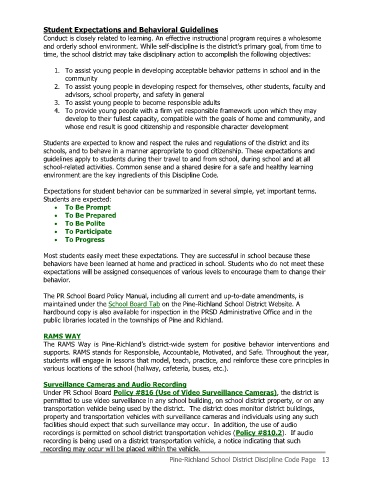 Pine-Richland School District Discipline Code Page 13