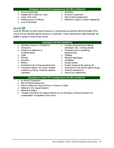 Level III offenses are acts whose frequency or seriousness disrupt the learning climate of the