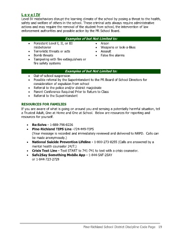 Level IV misbehaviors disrupt the learning climate of the school by posing a threat to the health,