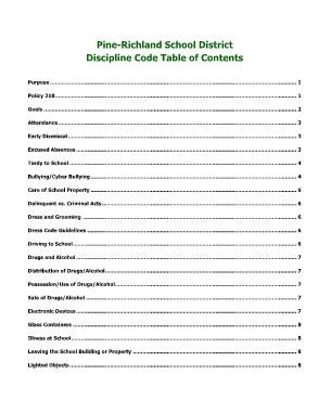 Discipline Code Table of Contents