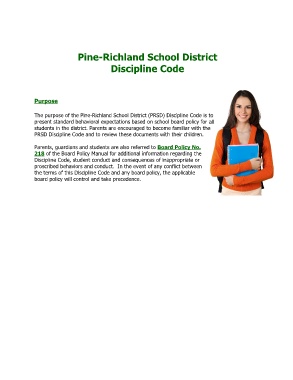 The purpose of the Pine-Richland School District (PRSD) Discipline Code is to