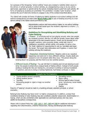 forms of bullying by students are prohibited. This prohibition includes “cyber bullying”, which