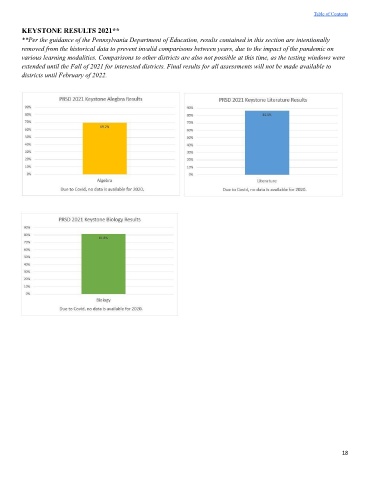 **Per the guidance of the Pennsylvania Department of Education, results contained in this section are intentionally