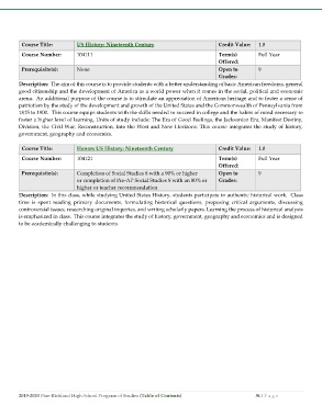 Course Title: Honors US History: Nineteenth Century Credit Value: 1.0