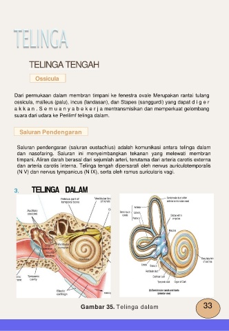 ossicula, malleus (palu), incus (landasan), dan Stapes (sanggurdi) yang dapat d i g e r