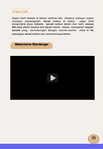 Organ  Corti  terletak  di  dalam  cochlea  dan         disebut  sebagai  organ