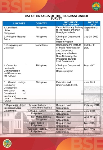 LIST OF LINKAGES OF THE PROGRAM UNDER