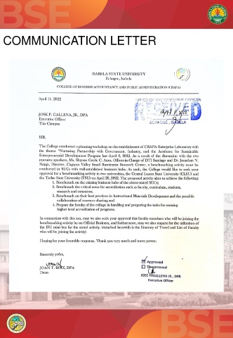 COMMUNICATION LETTER