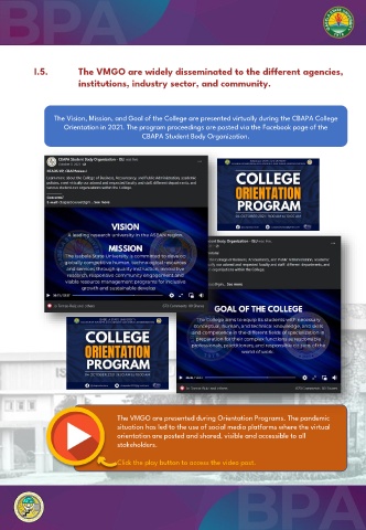 The Vision, Mission, and Goal of the College are presented virtually during the CBAPA College