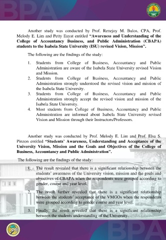 students to the Isabela State University (ISU) revised Vision, Mission”.