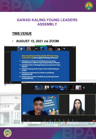 GAWAD KALING-YOUNG LEADERS ASSEMBLY TIME/VENUE • AUGUST 15, 2021 via ZOOM