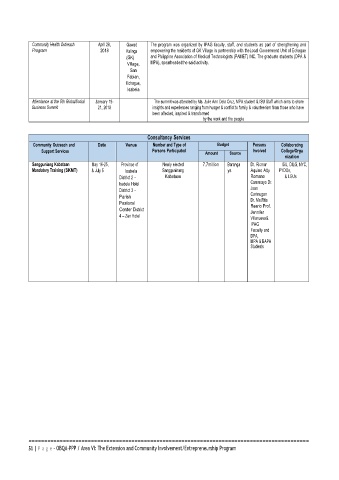 Community Outreach and   Date   Venue     Number and Type of    Budget       Persons   Collaborating