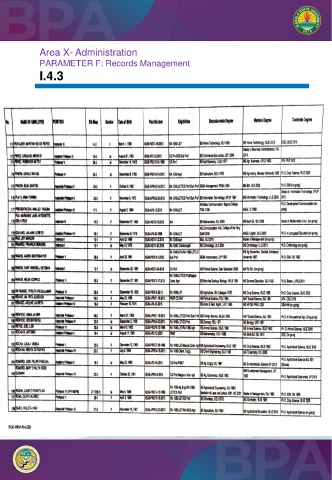 Area X- Administration PARAMETER F: Records Management I.4.3