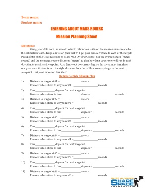 the calibration team, design a mission plan that will get your remote vehicle to each of the targets