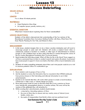 1. In this lesson, students imagine Mars to be a future vacation destination and will need to
