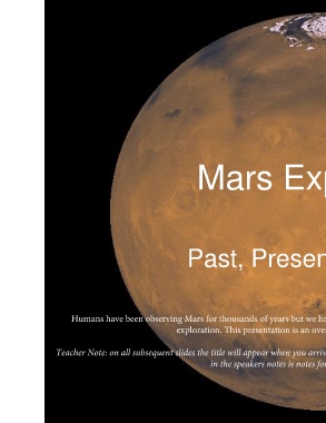 Mars Exp Past, Presen Humans have been observing Mars for thousands of years but we ha exploration. This presentation is an over Teacher Note: on all subsequent slides the title will appear when you arriv in the speakers notes is notes for