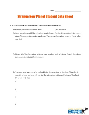 planet. What types of things do you observe? Record any observations (shape of planet, color,