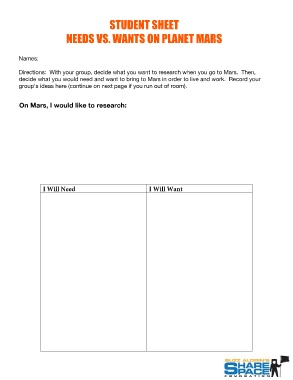 decide what you would need and want to bring to Mars in order to live and work. Record your