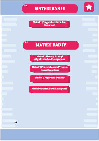 MATERI BAB III Materi 1 Pengarahan Guru dan Observasi MATERI BAB IV Materi 1 Konsep Strategi Algoritmik dan Pemograman Materi 2 Pengembangan Program Notasi Algoritma Materi 3 Algoritma Standar Materi 4 Struktur Data Kompleks 18