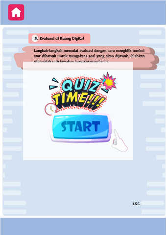 5. Evaluasi di Ruang Digital Langkah-langkah memulai evaluasi dengan cara mengklik tombol star dibawah untuk mengakses soal yang akan dijawab. Silahkan pilih salah satu jawaban jawaban yang benar. 155