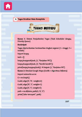 print(heapq.heappop(task)) # Output: (1, "Kerjakan PR")