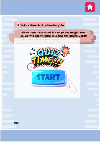 5. Evaluasi Materi Struktur Data Kompleks Langkah-langkah memulai evaluasi dengan cara mengklik tombol star dibawah untuk mengakses soal yang akan dijawab. Silahkan pilih salah satu jawaban jawaban yang benar. 218
