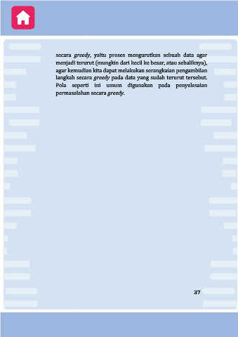 secara greedy, yaitu proses mengurutkan sebuah data agar