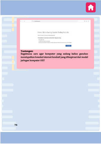 Tantangan: Bagaimana cara agar komputer yang sedang kalian gunakan mendapatkan koneksi internet kembali yang diinspirasi dari model jaringan komputer OSI? 74