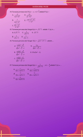 34. Turunan pertama dari F(x) = (4 − 9x ) adalah F(x) =