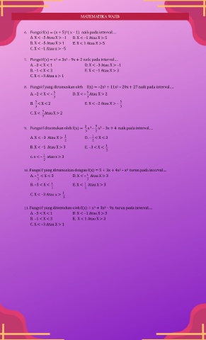 7. Fungsi f(x) = x + 3x – 9x + 2 naik pada interval….