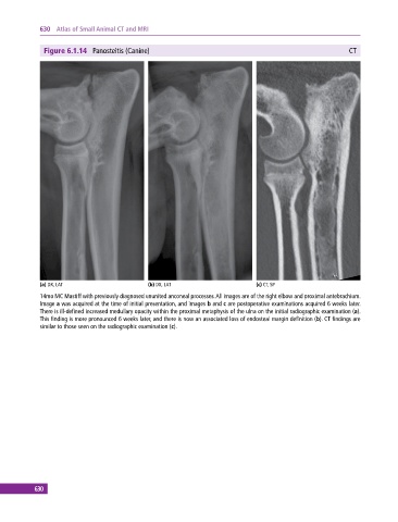 There is ill‐defined increased medullary opacity within the proximal metaphysis of the ulna on the initial radiographic examination (a).