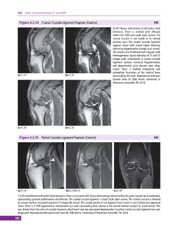 Figure 6.2.15 Partial Cruciate Ligament Rupture (Canine) MR