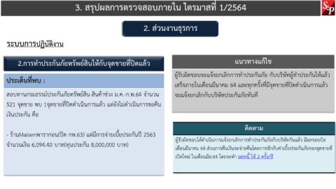 สอบทานกรมธรรม์ประกันภัยทรัพย์สิน-สินค้าช่วง ม.ค.-ก.พ.64 จ านวน จะแจ้งยกเลิกกับบริษัทประกันภัยทันที
