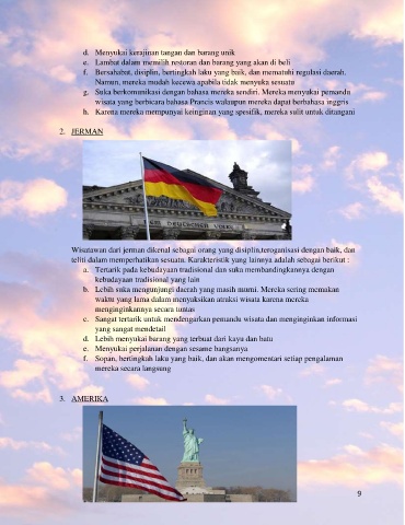 Wisatawan dari jerman dikenal sebagai orang yang disiplin,teroganisasi dengan baik, dan
