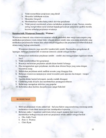 Wisatawan domestic juga memiliki karakteristik sendiri. Berdasarkan pengalaman di