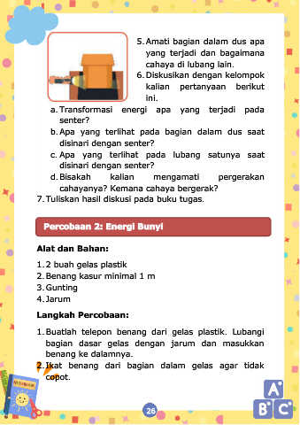1. Buatlah telepon benang dari gelas plastik. Lubangi