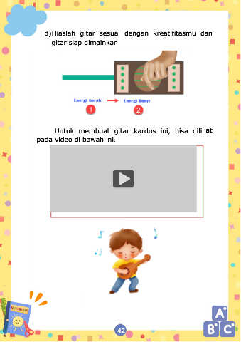 d) Hiaslah gitar sesuai dengan kreatifitasmu dan gitar siap dimainkan. Untuk membuat gitar kardus ini, bisa dilihat pada video di bawah ini. 42