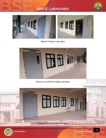 AREA IX. LABORATORIES Natural Products Laboratory Molecular and Biotechnology Laboratory Ecology and Biodiversity Laboratory 19 Level 3 Phase 1 BS Entrepreneurship