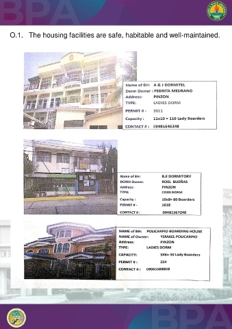 O.1. The housing facilities are safe, habitable and well-maintained.