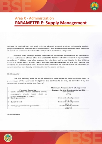Area X - Administration PARAMETER E: Supply Management